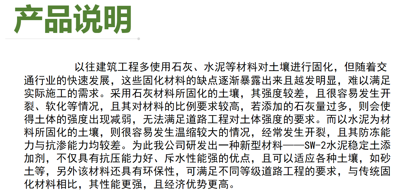 采用石灰材料所固化的土壤,其强度较差,且很容易发生开裂、软化等情况,且其对材料的比例要求较高,若添加的石灰量过多,则会使得土体的强度出现减弱,无法满足道路工程对土体强度的要求。
